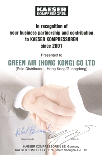 明利(香港)有限公司{Green Air (Hong Kong) Co. LTD.}是德國(guó)凱撒授權(quán)在中國(guó)廣東省和港澳地區(qū)的總代理。廣州市明愷工業(yè)設(shè)備有限公司 是 明利(香港)有限公司 在中國(guó)大陸注冊(cè)投資的一家外資公司,主要負(fù)責(zé)凱撒空壓機(jī)及其后處理系統(tǒng)在中國(guó)廣東省的銷售、安裝、維修服務(wù)。明利(香港)有限公司于1993年開始跟KAESER合作,我們衷心希望能通過(guò)我們的努力和您的配合,把空壓機(jī)行業(yè)的先進(jìn)技術(shù)介紹給每一個(gè)客戶,從而更好地貫徹KAESER的宗旨,樹立KAESER空壓機(jī)的良好形象。